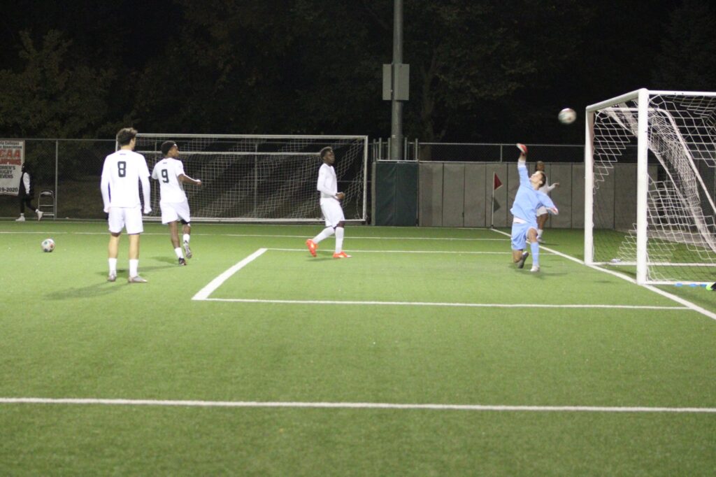 Alt: Goalkeeper Owen Pelc has a save percentage of .800 this season.