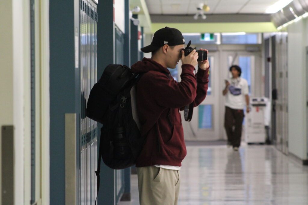 Kevin taking a photo outside Student Commons.